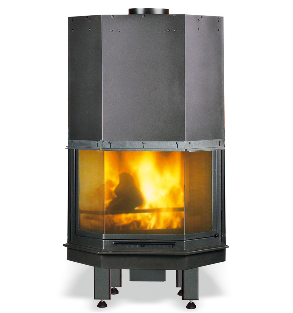 o a parete. La sua forma esagonale consente una visione completa e panoramica del piano fuoco.