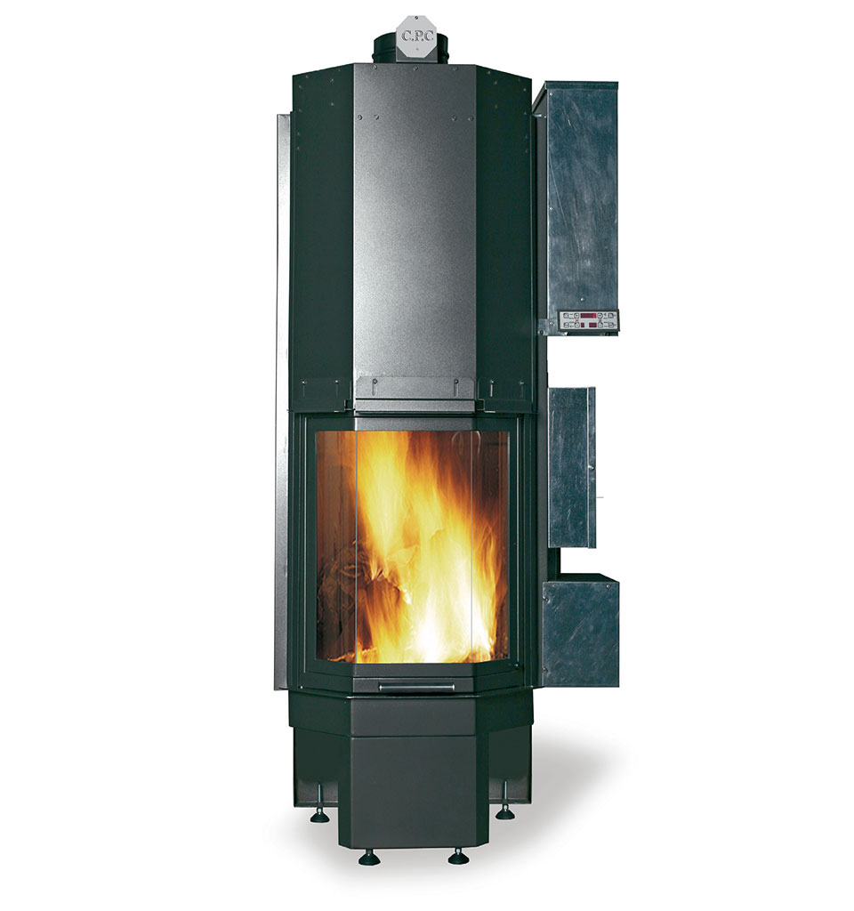 Il campione esagonale fa parte della linea di termocamini in grado di sostituire completamente la caldaia, con una semplice operazione di collegamento al sistema di riscaldamento della casa. L’acqua calda, prodotta dal camino che può essere tranquillamente usata sia in bagno che in cucina, viene fatta circolare attraverso una pompa nell’impianto di riscaldamento tradizionale. La sua forma consente una visione completa e panoramica del piano fuoco. Può essere posizionato ad angolo o a parete.
